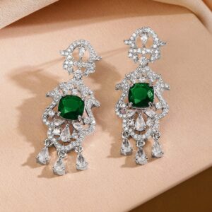Jewellery Set : This rhodium-plated brass jewellery set features a peacock-inspired design with emerald green center stones and white AAA cubic zirconia—crafted for parties, evening wear, and special occasions. Occasion Styling: A statement choice for parties, cocktail evenings, receptions, or festive dinners. It pairs beautifully with gowns, contemporary sarees, and designer outfits for a glamorous night-out look. Material & Care Dimension : Length : Necklace : 19 cm, Earrings : 2.5 cm Dimension : Width : Necklace : 4.5 cm, Earrings : 1.8 cm Net Weight : 36.98 Gram Net Quantity : 1 Necklace & 1 Pair of Earrings Material : Brass Care Label : It is advisable to avoid contact with water and organic chemicals i.e. perfume sprays. Store jewellery in airtight box. After use, wipe the jewellery with soft cotton cloth.