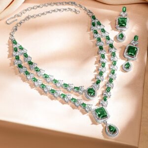 Rhodium-Plated Emerald Green & White Cubic Zirconia Studded Luxe Layer Necklace Set – Green