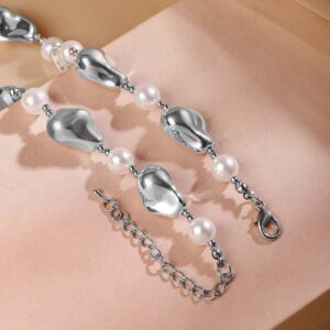 Necklace and Chains : A stunning fusion of modern and classic, this necklace features uniquely sculpted silver-toned beads interspersed with lustrous pearls. The fluid, organic shapes add a contemporary touch, while the pearls exude timeless grace. Perfect for those who appreciate bold sophistication with a hint of avant-garde charm. Occasion : Bring your style to a whole new level with this handcrafted piece of jewellery. When you’re celebrating a special Occasion : – a birthday, wedding, or personal milestone – this piece adds that extra something that makes us feel special and looking our best. Material : & Care Dimension : Size : Length : 30 cm, Width: 1 cm Net Weight: 40 g Net Quantity : 1 Necklace Material : Care Label : It is advisable to avoid contact with water and organic chemicals i.e. perfume sprays. Store jewellery in airtight box. After use, wipe the jewellery with soft cotton cloth.