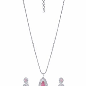 Rhodium plated Pink Crystal Zirconia studded Statement pendant Set – Silver::Pink
