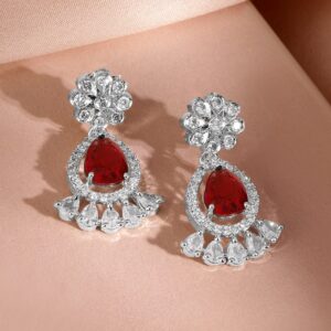 Be the first to review “Rhodium-Plated Ruby Red AD & Cubic Zirconia Studded Necklace Set – Ruby Red”