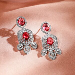 Exude elegance with this rhodium-plated choker jewelry set, adorned with ruby red & white cubic zirconia stones. The intricate design features floral-inspired embellishments, offering a luxurious and regal appeal. Perfect for weddings, festive occasions, and grand celebrations. Occasion : Bring your style to a whole new level with this handcrafted piece of jewellery. When you’re celebrating a special Occasion : – a birthday, wedding, or personal milestone – this piece adds that extra something that makes us feel special and looking our best. Material : & Care Dimension : Necklace : NS- 19 ; E- 4.5 cm, NS- 3 ; E- 1.5 W Dimension : Net Weight: 45.63 g Net Quantity : 1 Necklace & 2 Earrings Material :Brass Care Label : It is advisable to avoid contact with water and organic chemicals i.e. perfume sprays. Store jewellery in airtight box. After use, wipe the jewellery with soft cotton cloth.