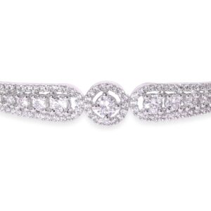 Sleek Sophistication: A Rhodium-Plated Classy Bracelet adorned with glistening Zirconia stones, epitomizing timeless elegance and refinement. Material & Care Dimension : Free Size Material: Brass Net Weight: 10.96 Gram Net Quantity: 1 Bracelet Care Label: It is advisable to avoid contact with water and organic chemicals i.e. perfume sprays. Store jewellery in airtight box. After use, wipe the jewellery with soft cotton cloth.