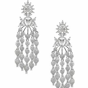Drop Earrings You can never go wrong with this classic piece of jewellery. With just the right amount of charm and style, it can take you from a busy day at work to an impromptu night out with colleagues or friends. Occasion : Bring your style to a whole new level with this handcrafted piece of jewellery. When you’re celebrating a special Occasion : – a birthday, wedding, or personal milestone – this piece adds that extra something that makes us feel special and looking our best. Material : & Care Dimension : Length 8 cm Material : Brass Collection : Zircon Silver Care Label : It is advisable to avoid contact with water and organic chemicals i.e. perfume sprays. Store jewellery in airtight box. After use, wipe the jewellery with soft cotton cloth.