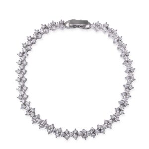“Chic Elegance: Rhodium-plated Classy Bracelet adorned with shimmering Zirconia stones, exuding timeless style and sophistication.” Material & Care Dimension : Free Size Material : Brass Care Label : It is advisable to avoid contact with water and organic chemicals i.e. perfume sprays. Store jewellery in airtight box. After use, wipe the jewellery with soft cotton cloth.