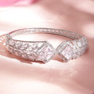 This chic accessory features meticulously placed zirconia stones on a sleek rhodium-plated base, offering a touch of contemporary glamour to elevate your style. Effortlessly versatile, this bracelet is the perfect addition to any ensemble, making a subtle yet impactful statement. Material & Care Dimension : Free Size Material: Brass Net Weight: 18.79 Gram Net Quantity: 1 Bracelet Care Label: It is advisable to avoid contact with water and organic chemicals i.e. perfume sprays. Store jewellery in airtight box. After use, wipe the jewellery with soft cotton cloth.