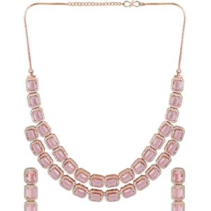 It’s a Necklace Set fit for the queens! Exude the royal vibe with this stone studded Necklace Set. Consisting of a necklace, matching earrings, this Necklace Set is crafted from gold-plated brass, stones and beads. Occasion : Bring your style to a whole new level with this handcrafted piece of jewellery. When you’re celebrating a special Occasion : – a birthday, wedding, or personal milestone – this piece adds that extra something that makes us feel special and looking our best. Material & Care Dimension :Necklace 38 cm, Earrings 4.2 cm Material : Copper Care Label : It is advisable to avoid contact with water and organic chemicals i.e. perfume sprays. Store jewellery in airtight box. After use, wipe the jewellery with soft cotton cloth