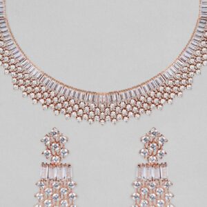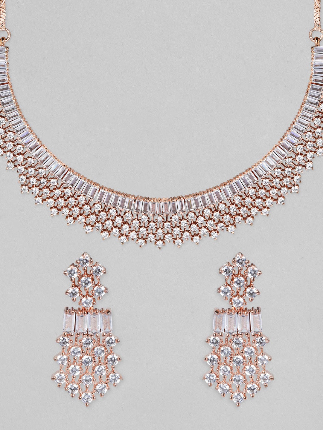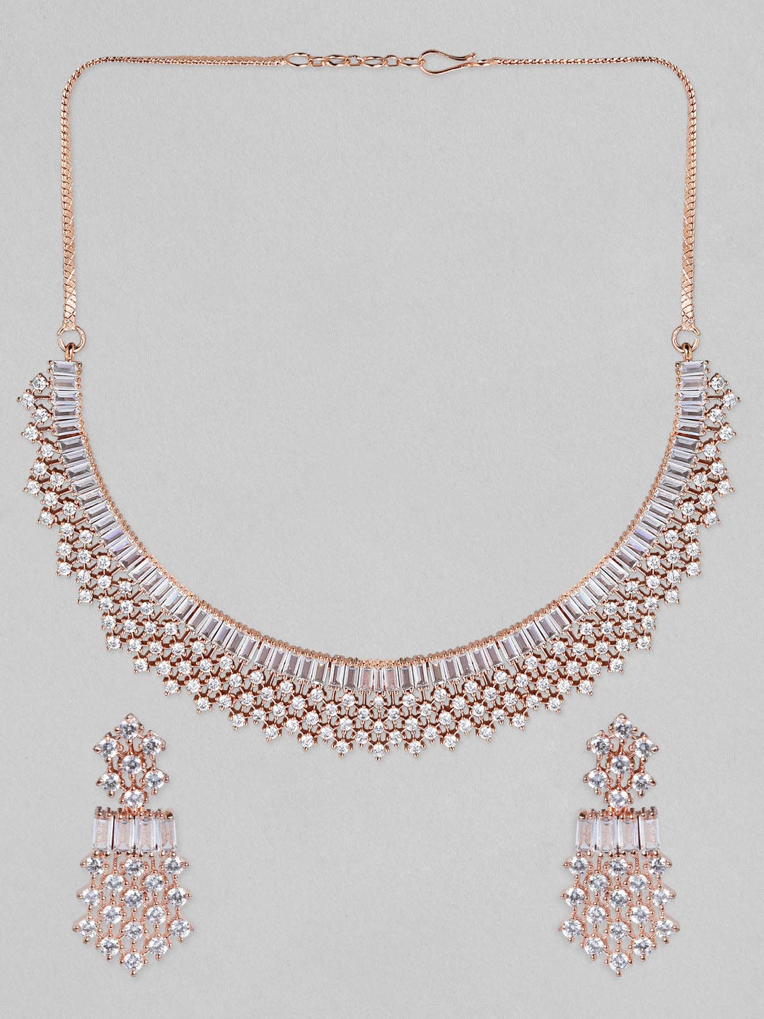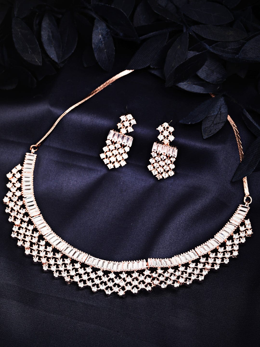 Rose Gold Plated Handcrafted AD Studded Necklace Set – Rose Gold