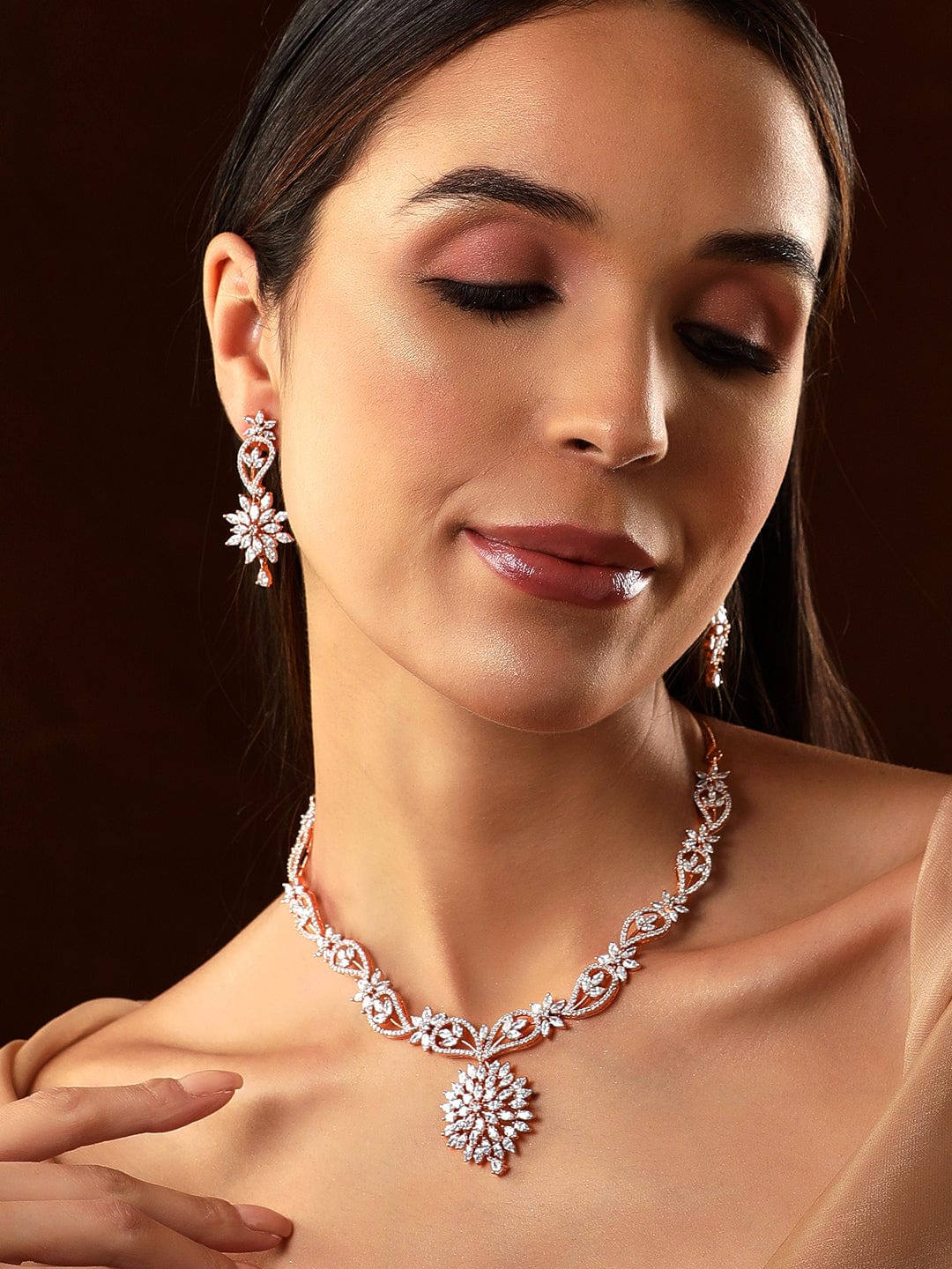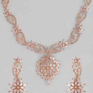 it’s a jewellery set fit for the queens! Exude the royal vibe with this stone studded jewellery set. Consisting of a necklace, matching earrings, this necklace set is crafted from gold-plated brass, stones and beads. Occasion : Bring your style to a whole new level with this handcrafted piece of jewellery. When you’re celebrating a special Occasion : – a birthday, wedding, or personal milestone – this piece adds that extra something that makes us feel special and looking our best. Material : & Care Dimension :: Necklace: 40.1 cm; Earrings: 5.2 cm Material :Copper Care Label : It is advisable to avoid contact with water and organic chemicals i.e. perfume sprays. Store jewellery in airtight box. After use, wipe the jewellery with soft cotton cloth