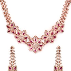 It’s a jewellery set fit for the queens! Exude the royal vibe with this stone studded jewellery set. Consisting of a necklace, matching earrings, this necklace set is crafted from gold-plated brass, stones and beads. Occasion : Bring your style to a whole new level with this handcrafted piece of jewellery. When you’re celebrating a special Occasion : – a birthday, wedding, or personal milestone – this piece adds that extra something that makes us feel special and looking our best. Material & Care Dimension : Length Necklace – 13.5cm , Earrings – 4.5 cm Material : Copper Care Label : It is advisable to avoid contact with water and organic chemicals i.e. perfume sprays. Store jewellery in airtight box. After use, wipe the jewellery with soft cotton cloth.