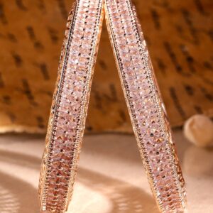 A premium set of 2 bangles in 18K rose gold plating, intricately adorned with white cubic zirconia stones. These timeless bangles exude elegance, making them a luxurious statement piece. Material: Brass Plating : Rose Gold Plated Net Weight: 79.37 Gram Net Quantity: 2 Bangles Care Label: It is advisable to avoid contact with water and organic chemicals i.e. perfume sprays. Store jewellery in airtight box. After use, wipe the jewellery with soft cotton cloth.