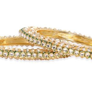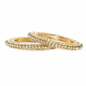Bangle : This exquisite set of 2 handcrafted bangles features 22K gold plating, Kundan embellishments, and a vibrant green enamel border, blending traditional elegance with modern sophistication. Occasion : Bring your style to a whole new level with this handcrafted piece of jewellery. When you’re celebrating a special Occasion : – a birthday, wedding, or personal milestone – this piece adds that extra something that makes us feel special and looking our best. Material : & Care Dimension : Net Weight: 48.30 g Net Quantity: 2 Bangles Material :Brass Care Label : It is advisable to avoid contact with water and organic chemicals i.e. perfume sprays. Store jewellery in airtight box. After use, wipe the jewellery with soft cotton cloth.