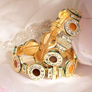 Bangle: One of the most versatile forms of ornate designs that goes well with every style and personality. Wear one of these and you do not have to worry about any other accessory. Occasion : Bring your style to a whole new level with this handcrafted piece of jewellery. When you’re celebrating a special Occasion : – a birthday, wedding, or personal milestone – this piece adds that extra something that makes us feel special and looking our best. Material : & Care Dimension : Material :Brass Care Label : It is advisable to avoid contact with water and organic chemicals i.e. perfume sprays. Store jewellery in airtight box. After use, wipe the jewellery with soft cotton cloth.