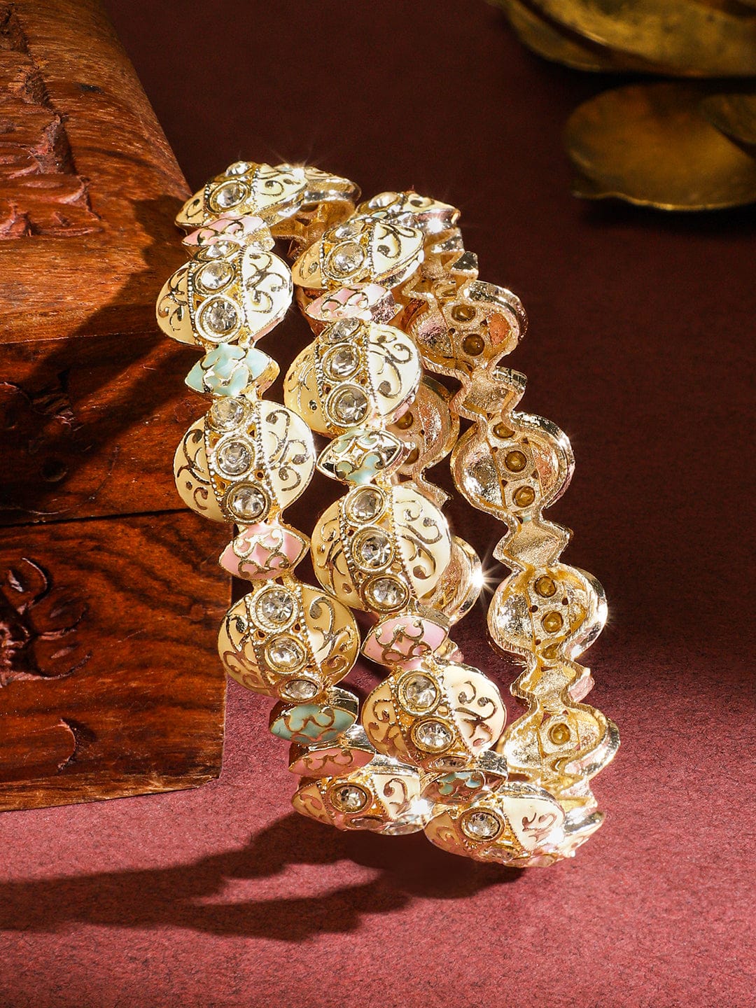 Set of 2 Handcrafted 18K Gold-Plated Pastel Colour Enamel Bangles with White Stone – 2.4