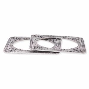 The square design adds a modern twist to these traditional pieces, making them a unique and versatile addition to your jewelry collection. The oxidized finish lends a touch of vintage charm, while the intricate craftsmanship showcases attention to detail. Material & Care Material : Brass Collection: Oxidized Net Quantity: 2 Bangles Care Label : It is advisable to avoid contact with water and organic chemicals i.e. perfume sprays. Store jewellery in airtight box. After use, wipe the jewellery with soft cotton cloth.