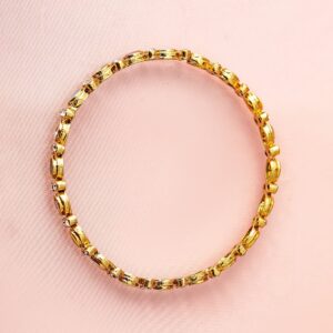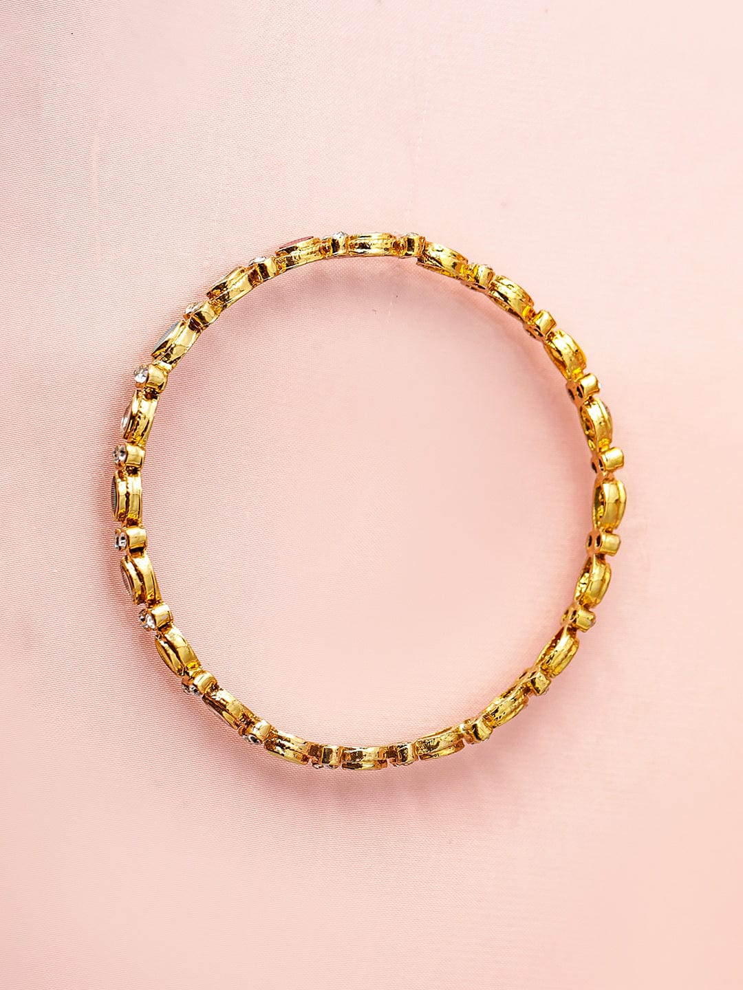 Bangle : Discover the elegance of Set of 4 18K Mehandi Gold-Plated Multicolor Kundan & Gemstone Studded Bangles. This piece combines quality craftsmanship with a timeless design, making it perfect for any occasion. Elevate your style effortlessly and enjoy compliments on your refined taste. A must-have addition to your jewelry collection. Occasion : Bring your style to a whole new level with this handcrafted piece of jewellery. When you’re celebrating a special Occasion : – a birthday, wedding, or personal milestone – this piece adds that extra something that makes us feel special and looking our best. Material : & Care Material :Brass Weight : 44.34g Net Qnty : 4 Bangles Care Label : It is advisable to avoid contact with water and organic chemicals i.e. perfume sprays. Store jewellery in airtight box. After use, wipe the jewellery with soft cotton cloth.