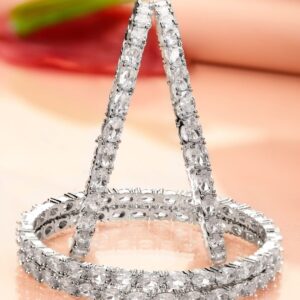 Bangle : Discover the elegance of Set Of 4 Rhodium-Plated Crystal AD & Cubic Zirconia Studded Bangles. This piece combines quality craftsmanship with a timeless design, making it perfect for any occasion. Elevate your style effortlessly and enjoy compliments on your refined taste. A must-have addition to your jewelry collection. Occasion : Bring your style to a whole new level with this handcrafted piece of jewellery. When you’re celebrating a special Occasion : – a birthday, wedding, or personal milestone – this piece adds that extra something that makes us feel special and looking our best. Material : & Care Material: Brass Net Weight: 73.5 Gram Net Quantity: 4 Bangles Plating : Rhodium Plated Care Label: It is advisable to avoid contact with water and organic chemicals i.e. perfume sprays. Store jewellery in airtight box. After use, wipe the jewellery with soft cotton cloth.