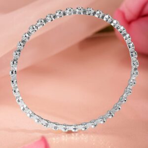 Bangle : This set of 6 rhodium-plated bangles in a radiant silver tone features bezel-set cubic zirconia stones in a timeless design—perfect for weddings, parties, and everyday glam. Occasion : Bring your style to a whole new level with this handcrafted piece of jewellery. When you’re celebrating a special Occasion : – a birthday, wedding, festive or personal milestone – this piece adds that extra something that makes us feel special and looking our best. Material & Care Material: Brass Plating : Rhodium Plated Net Weight: 50.77 Gram Net Quantity: 6 Bangles Care Label : It is advisable to avoid contact with water and organic chemicals i.e. perfume sprays. Store jewellery in airtight box. After use, wipe the jewellery with soft cotton cloth.